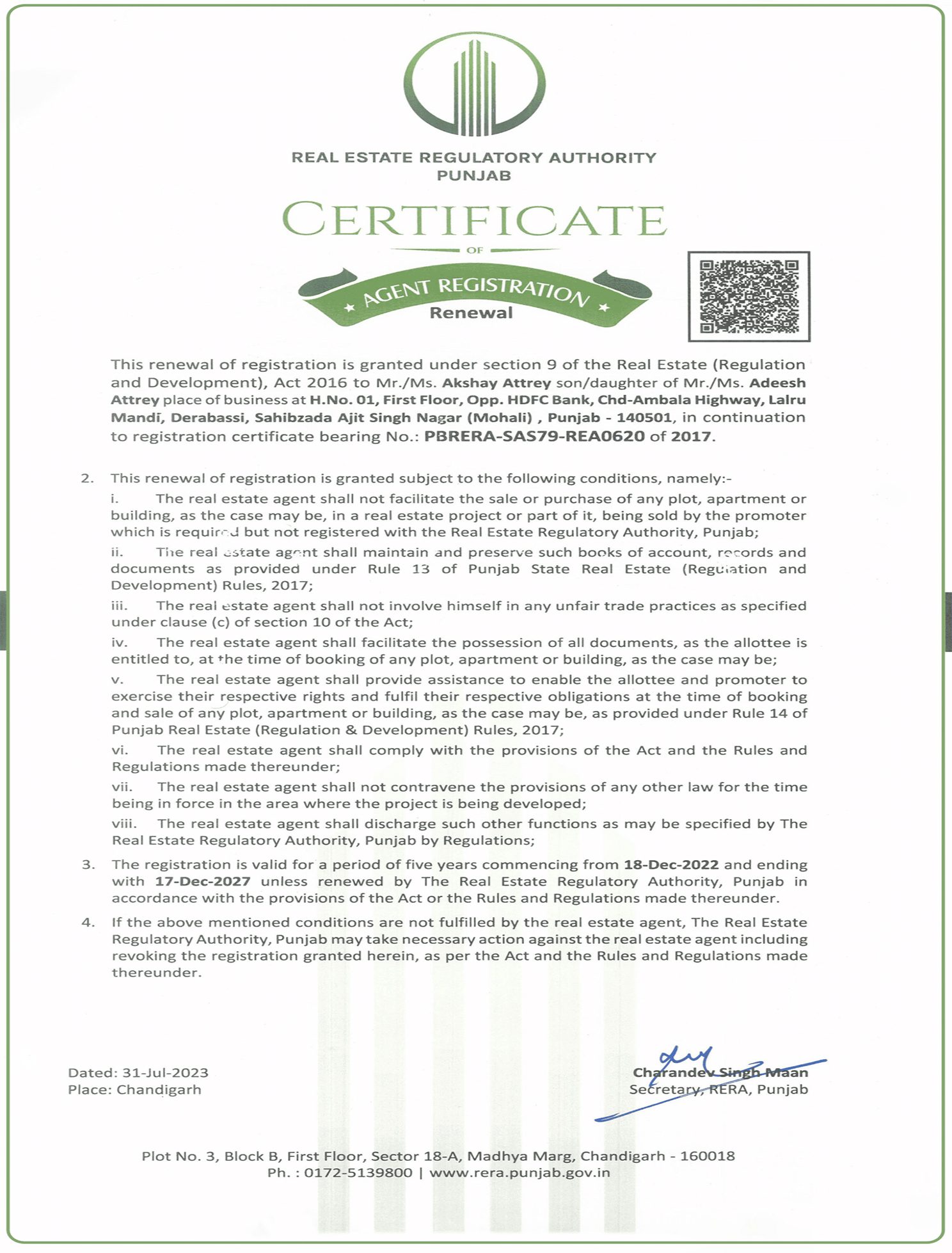 Akshay Attrey specialize in providing seamless Real Estate Services, ensuring that buying, selling or renting properties is a hassle-free experience. Our expert team guides you at every step, offering personalized solutions tailored to your needs. With deep market insights and a client-focused approach, we help you make the right property decisions. Whether you're a first-time buyer or a seasoned investor, we aim to provide a stress-free and rewarding experience. We believe in transparency, integrity and exceptional service to meet your Real Estate needs. Let us help you find the perfect property that matches your lifestyle and investment goals.